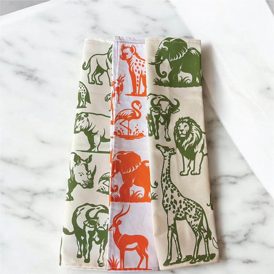 Meet our napkins that showcase beautiful animal prints that add a touch of nature-inspired elegance to any table, honoring the part all these play in our ecosystem. Made with high-quality fabric, they are both stylish and functional.