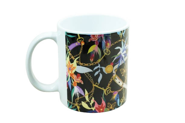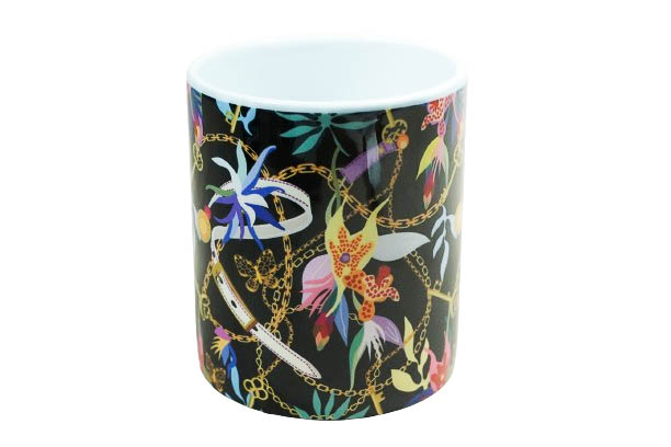 This bright beautifully printed mug makes tea time a pleasure. Intricate patterns. Soothing colors. Makes a great gift. It can be coupled with our matching trays to make a great set.